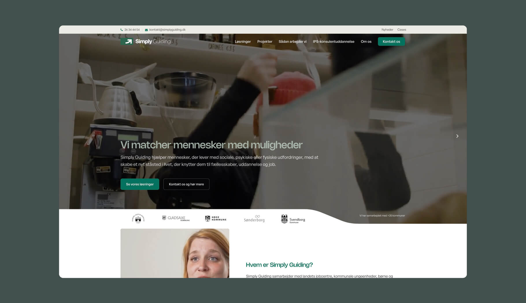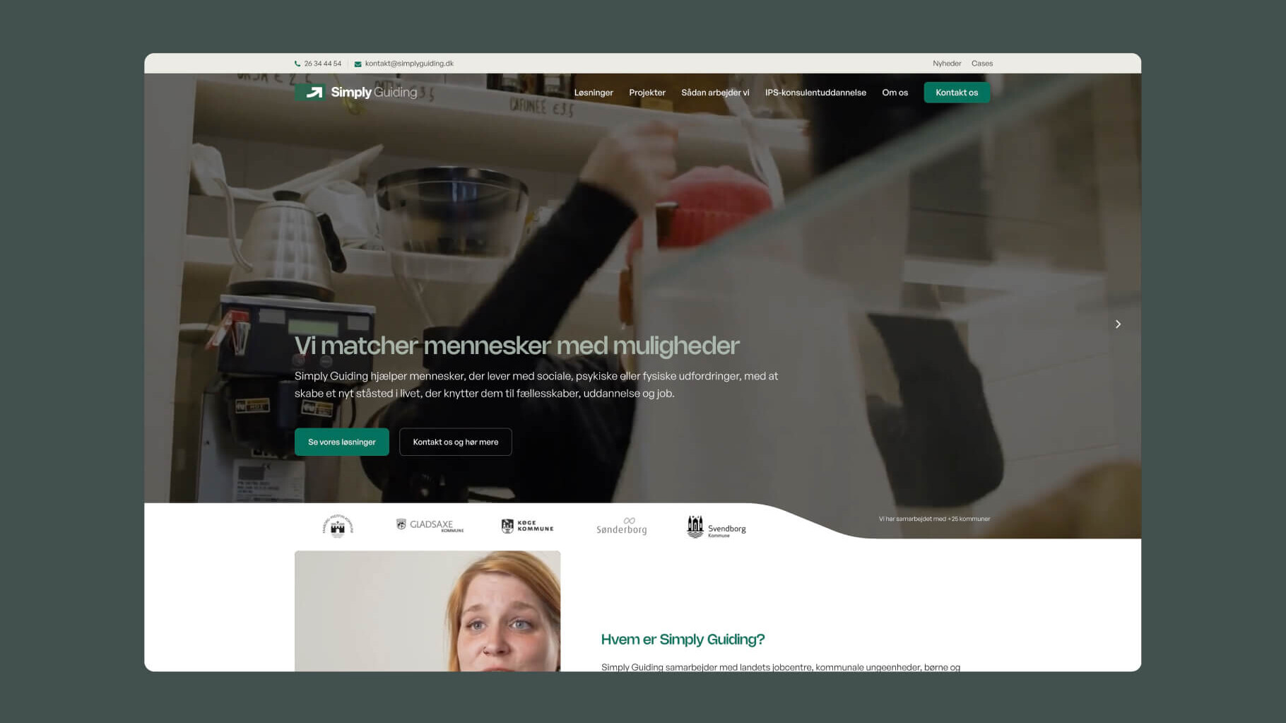 I forbindelse med Simply Guidings rebranding har vi stået for visuel identitet og nyt website-univers. Simply Guiding samarbejder med landets jobcentre, kommunale ungeenheder, børne- og familieafdelinger og forsikrings- og pensionsselskaber.