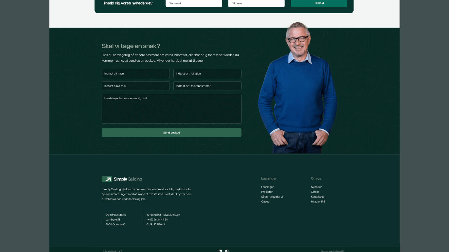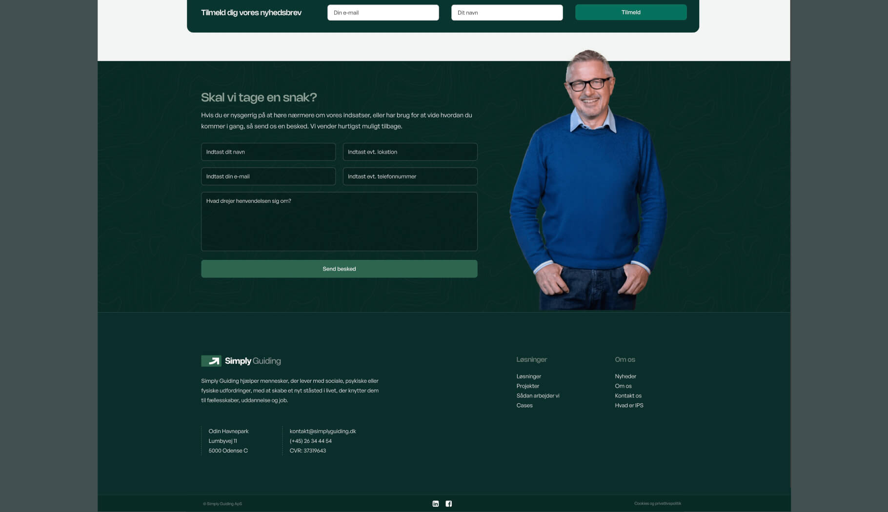 Hele løsningen er tænkt til at fremstå tillidsvækkende og lettilgængelig – både visuelt og teknisk. Websitet er responsivt, hurtigt og optimeret til målgrupper, der ofte tilgår det fra mobile enheder. Resultatet er en digital tilstedeværelse, der understøtter Simply Guidings mission og værdier.